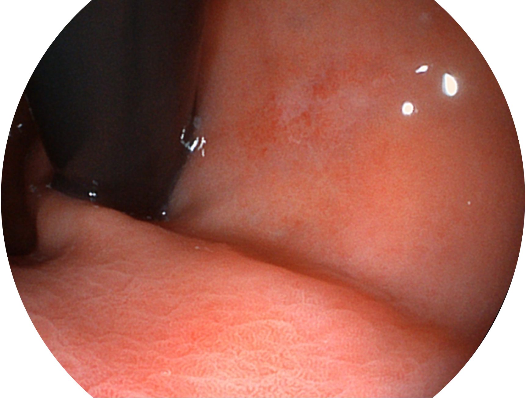SFI技术是结合特定光谱照明与数字光谱滤波,实现高亮度特殊光成像。染色模式下,不改变粘液、食物残渣、粪液等基本颜色,在保持与白光照明相似的图像色调的同时突显了图像颜色的红白对比度,且在远距离观察的情况下具备与普通白光模式相同的图像亮度,有助于消化道疾病的大范围扫查和早癌筛查。